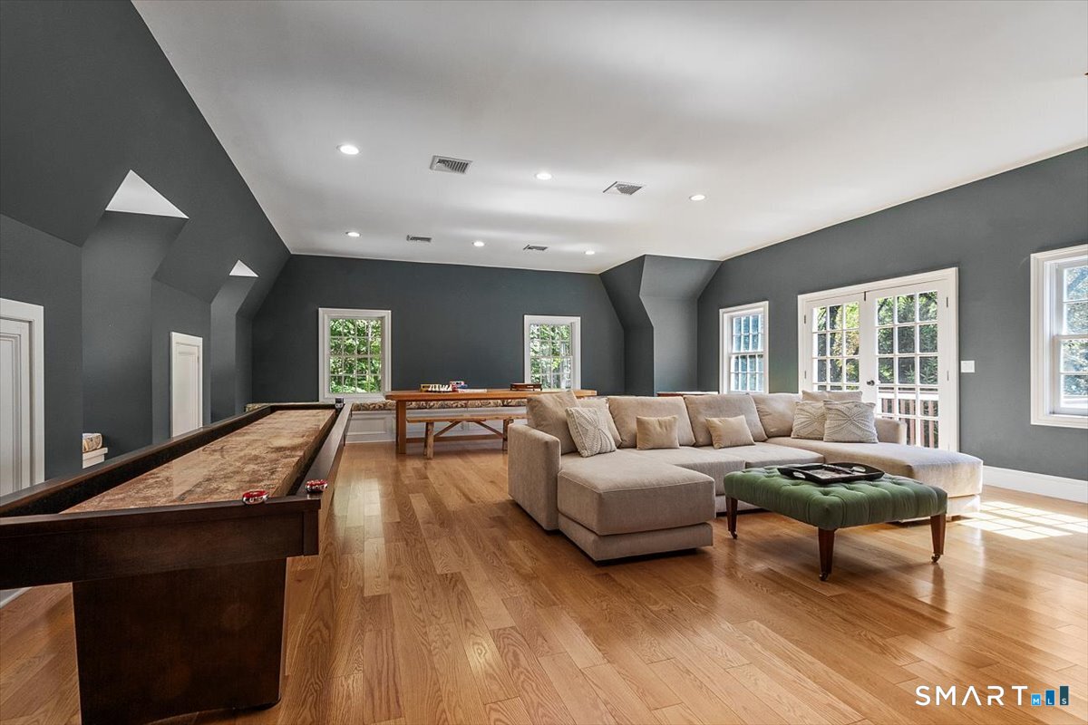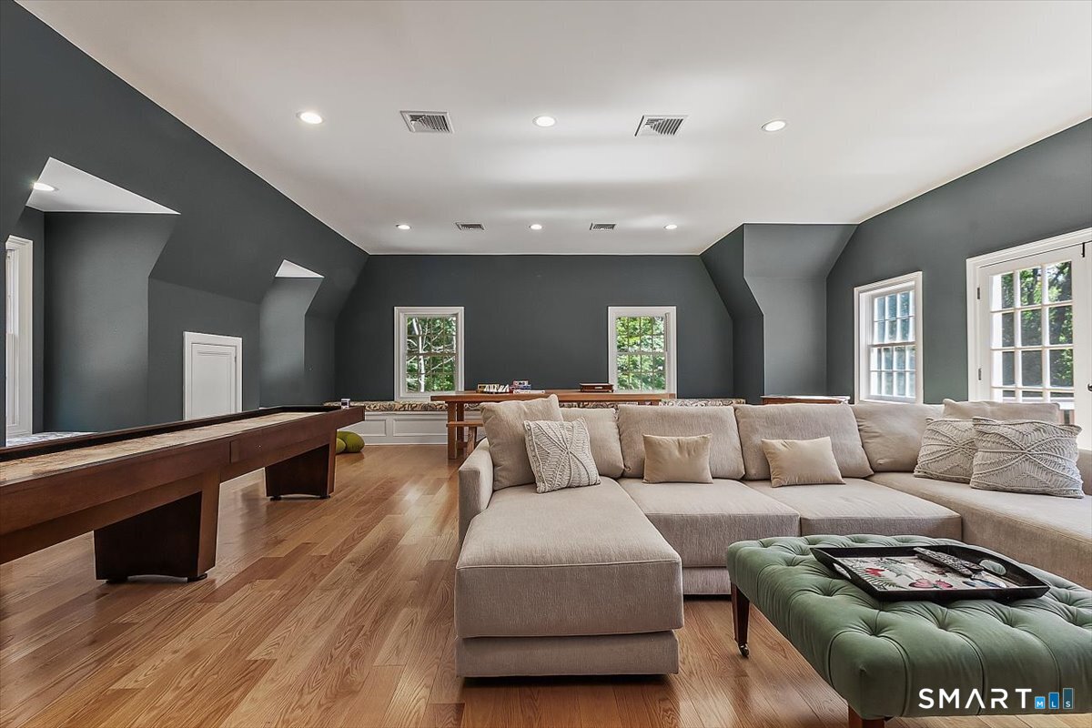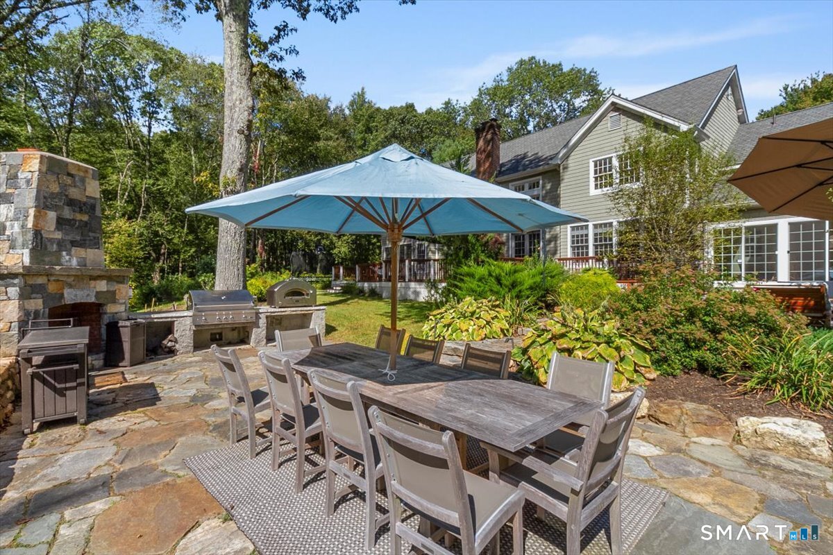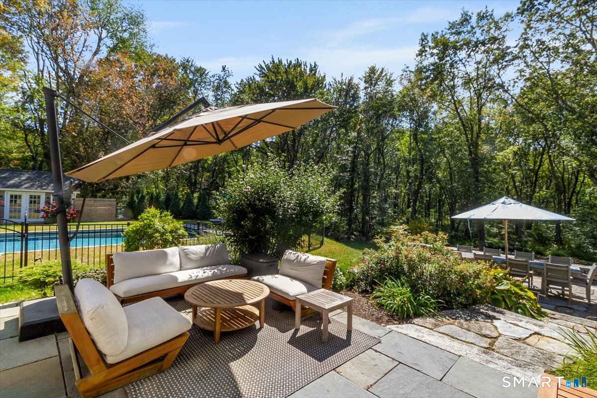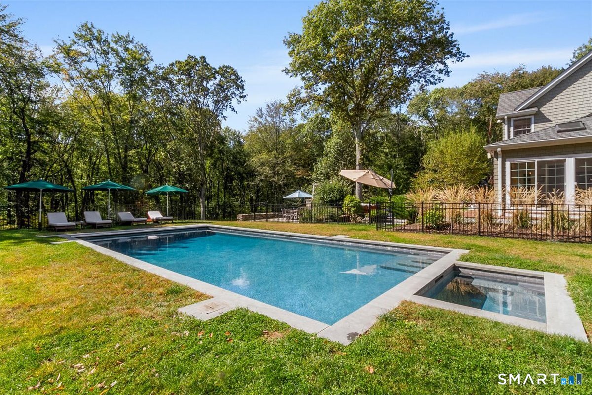 Roxbury Shingle-Style Gem with Sparkling Pool! This grand residence sits off one of Litchfield County's most treasured and bucolic roads amidst boldfaced names - past and present - and backing up to a 60-acre parcel of Roxbury Land Trust. Prepare to be "wowed" by the sun-flooded double height living room, gorgeous eat-in-kitchen, formal dining room, four-season sunroom, wood-paneled library/den, and well-executed rec room. Four oversized bedrooms with ensuite baths, including primary suite options on both the main floor and upstairs. A large outdoor deck which spills onto a native stone terrace with grill and pizza oven; perfect for entertaining friends and family. Partially finished basement with gym and tons of storage. Pristine 20x40 gunite pool and spa added in 2022. Cagenio-wired smart home with mega-speed internet, Wifi covering the interior and exterior patio and pool areas, whole house generator. Many "hidden money" upgrades inside and out, including roof in 2021 (w/ 50-yr transferable warranty), five zone HVAC system with all units replaced 2021-2024, pool and spa in 2022, whole-house generator, mini-splits in the sunroom and gym area, and a comprehensive automation system. In the heart of Litchfield County, convenient to Lake Waramaug, fine dining, farmers markets, town tennis courts and thousands of acres of land trust to explore. 90 minutes to NYC but a world away.